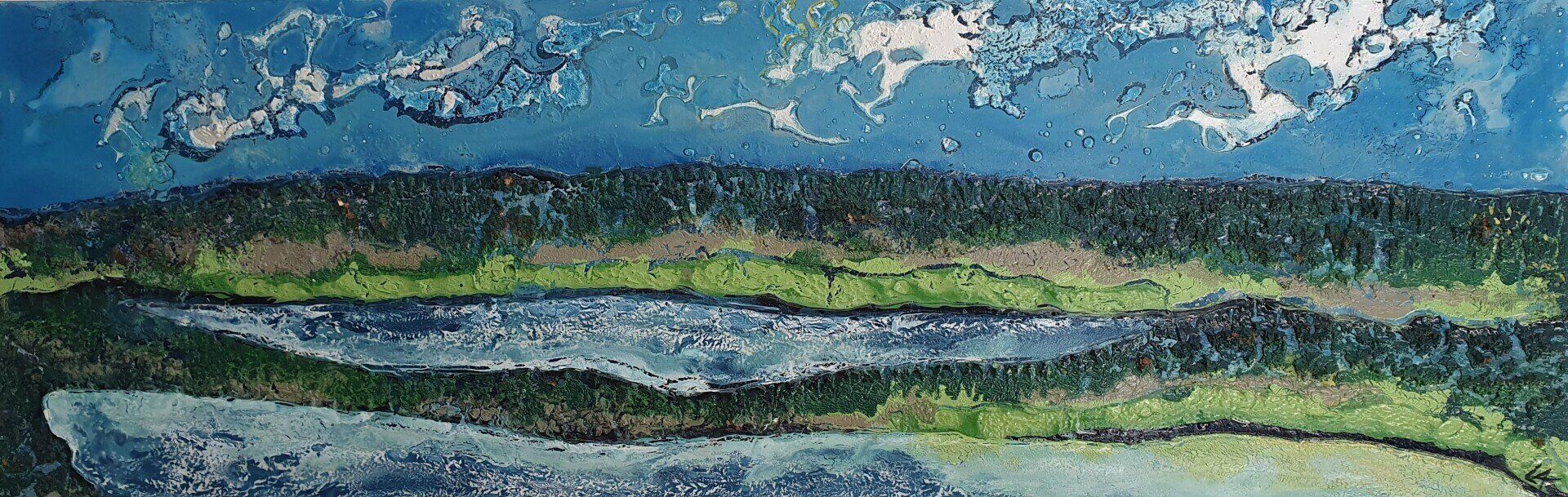 Ma peinture ne cherche cependant pas à faire passer de message critique, ou à mettre en avant un concept au détriment de la perception et de l’émotion. Je préfère évoquer des visions sereines, propices à l’imaginaire et au rêve. J’aime créer des paysages différents, où le ciel, l’eau, les fonds et le végétal se mêlent pour questionner notre rapport au visible.