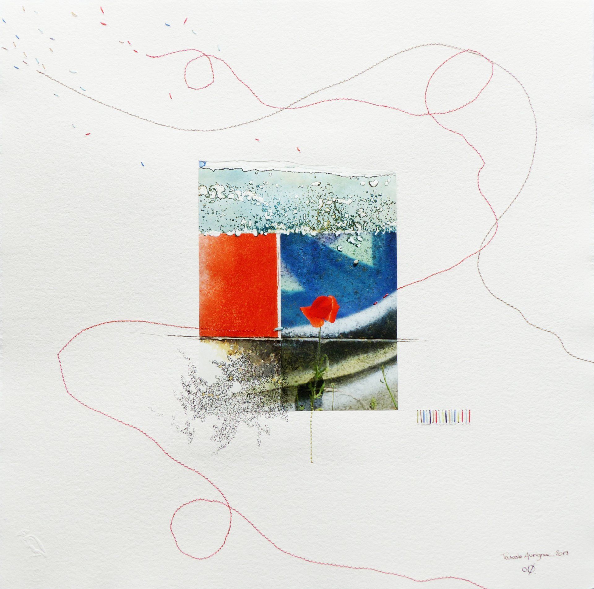 Technique mixte : monotype, photographie (Olivier Draussin), dessin, estampes, encre, fil cousu...