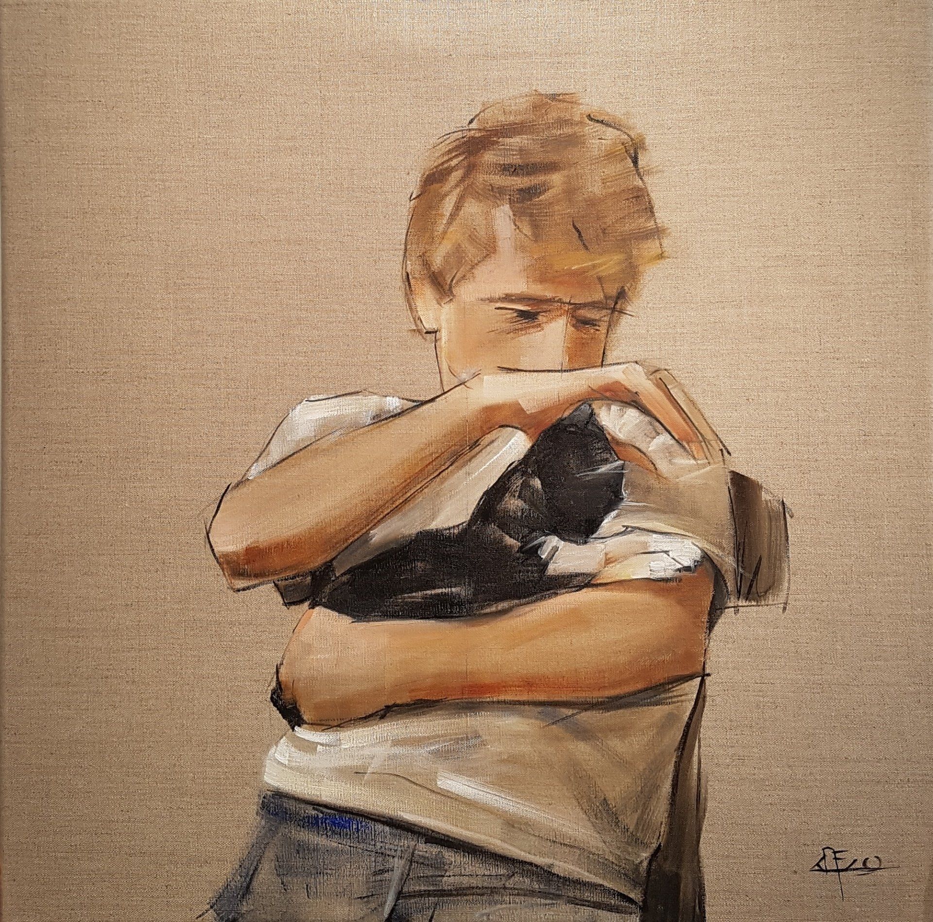 Lorsque AmEmo a peint ses complices les félins puis sa progéniture, ils lui servaient de guide dans l'apprentissage du vivre ici et maintenant, sans peur du lendemain, en tout insouciance. Seulement voilà, nous le savons bien nous, adultes, que ces moments et notre maison sont fragiles. La nature s'est installée au fur et à mesure dans les toiles d'AmEmo et l'a rattrapée, la méditation également. Aujourd'hui, plutôt que de servir ses inspirations et ses aspirations personnelles, elle voudrait la communion et honorer cette chose magnifique que le souffle de la vie. Elle a l'espoir que ses toiles fassent un peu vibrer et respirer, qu'elles soient une pause au présent.